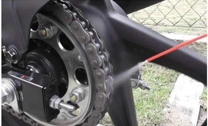 Cleaning: Use a gentle motorcycle chain cleaner or kerosene to clean the chain. Apply the cleaner on a soft brush or cloth and gently scrub the chain to remove dirt, grime, and old lubricant.